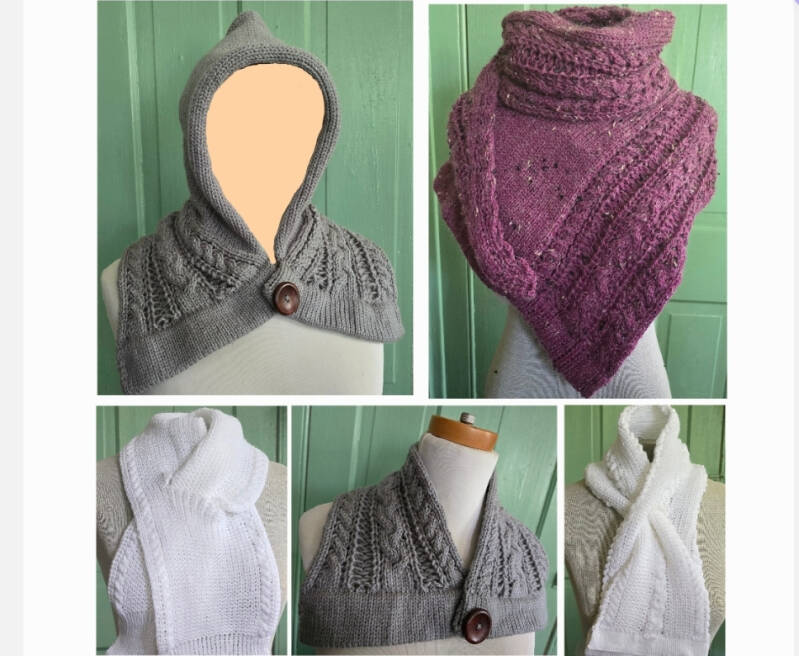 All of the pictured projects use the cables and tuck lace fabric. The article explains to make it either using one bed or two, on any brand of machine. The article is free. It's very detailed so it is offered as a pdf download on mediafire. Use the article to learn how to create the fabric and add it to your own scarf, shawl and blanket designs. The link is below. Each of the pictured designs is in one of my books of patterns. Links to the books on Ravelry are below also.